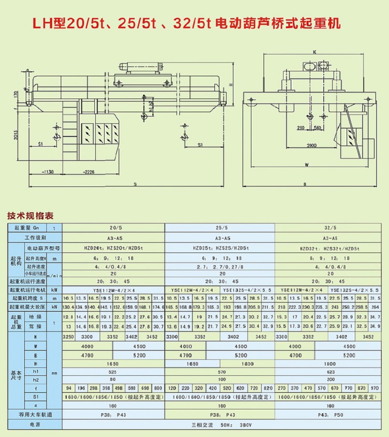 LH型20t、25t、32t電動葫蘆橋式起重機(jī)