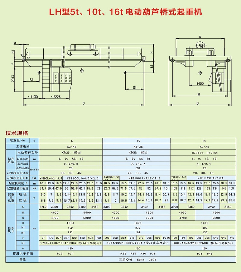 LH型5t、10t、16t電動葫蘆橋式起重機(jī)